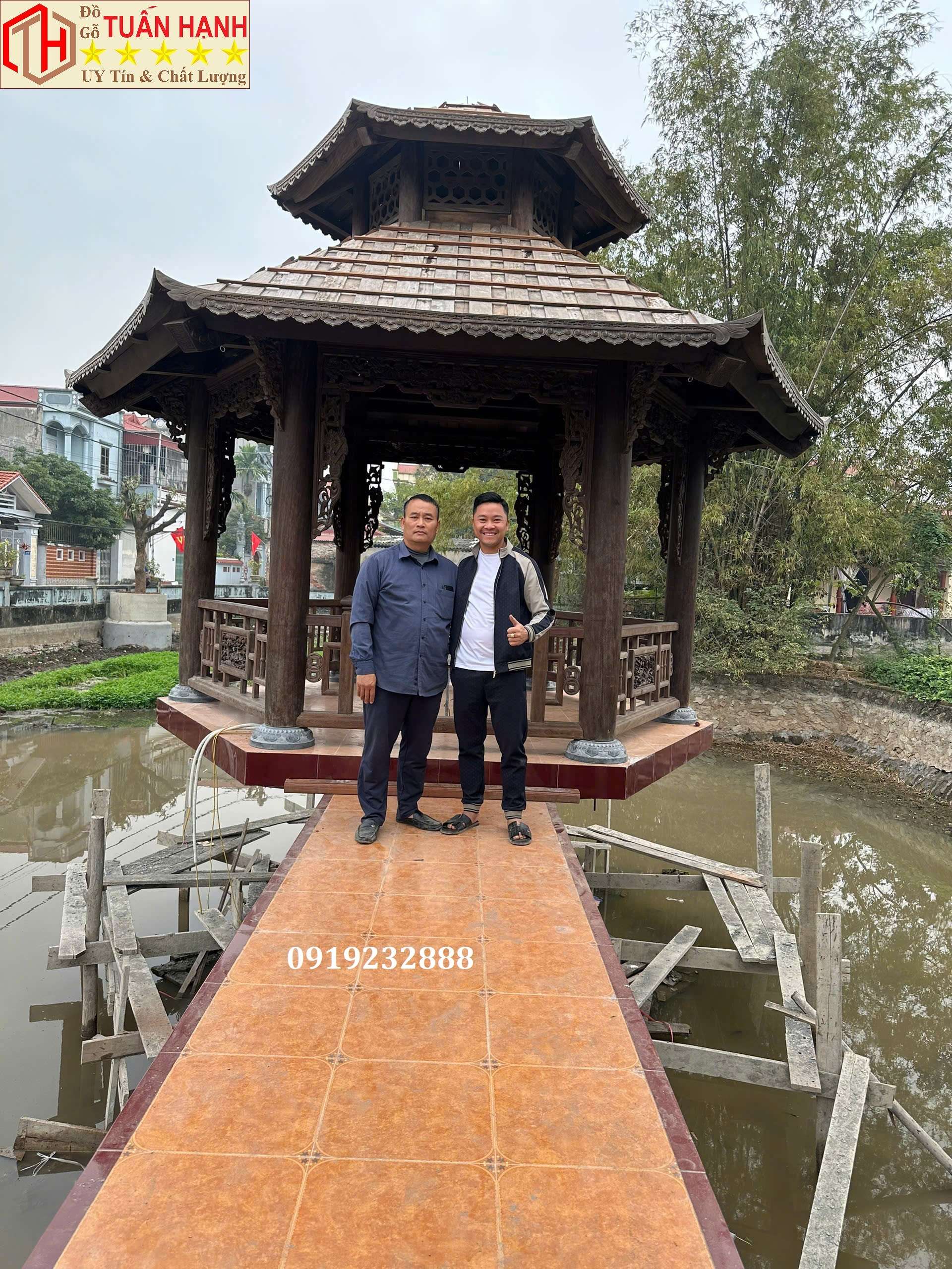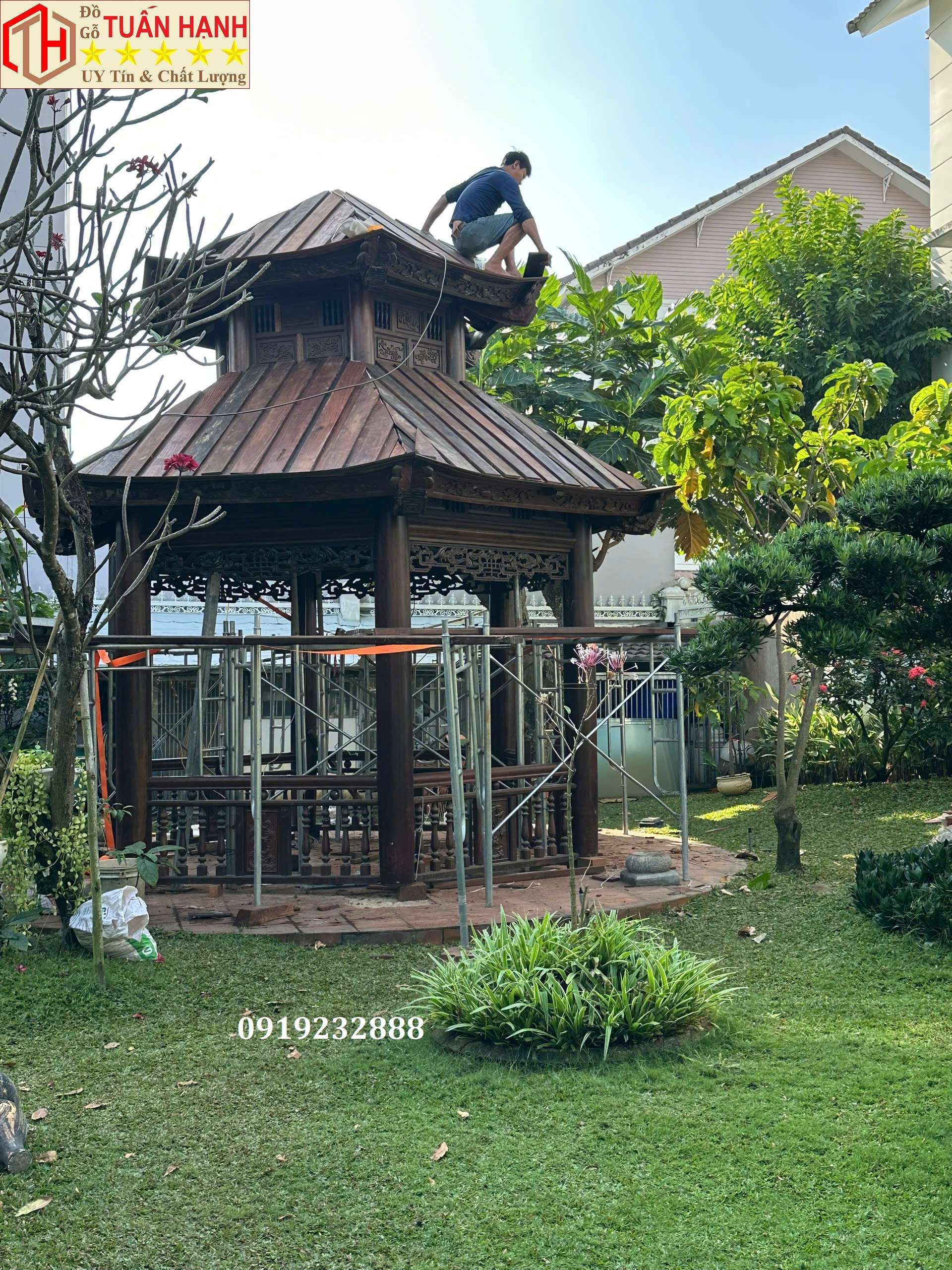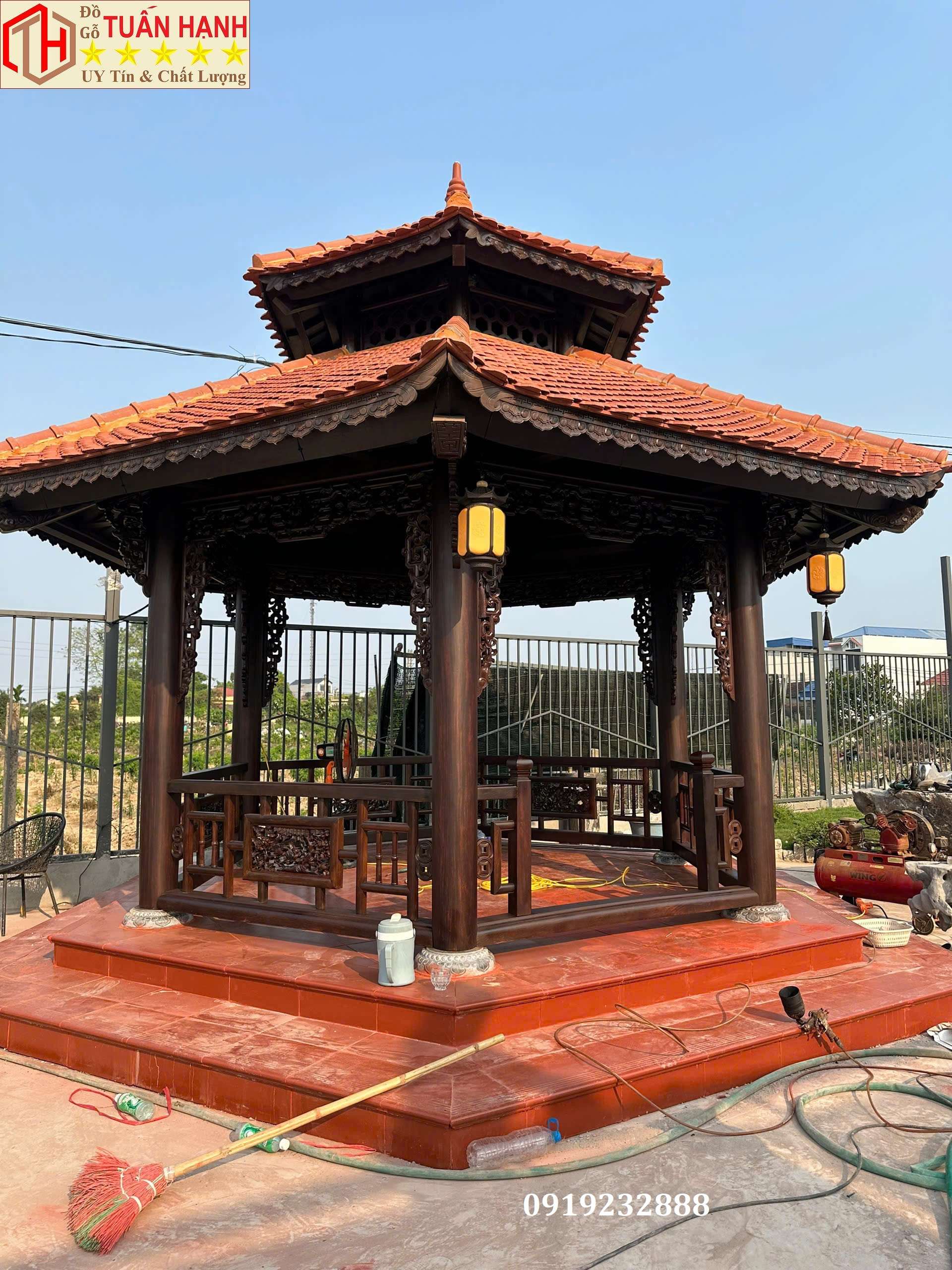 Xưởng sản xuất Nhà Gỗ Tuấn Hạnh nhận thi công Lầu Trà Lục Giác Gỗ Lim theo kích thước yêu cầu, hỗ trợ vận chuyển lắp đặt toàn quốc.