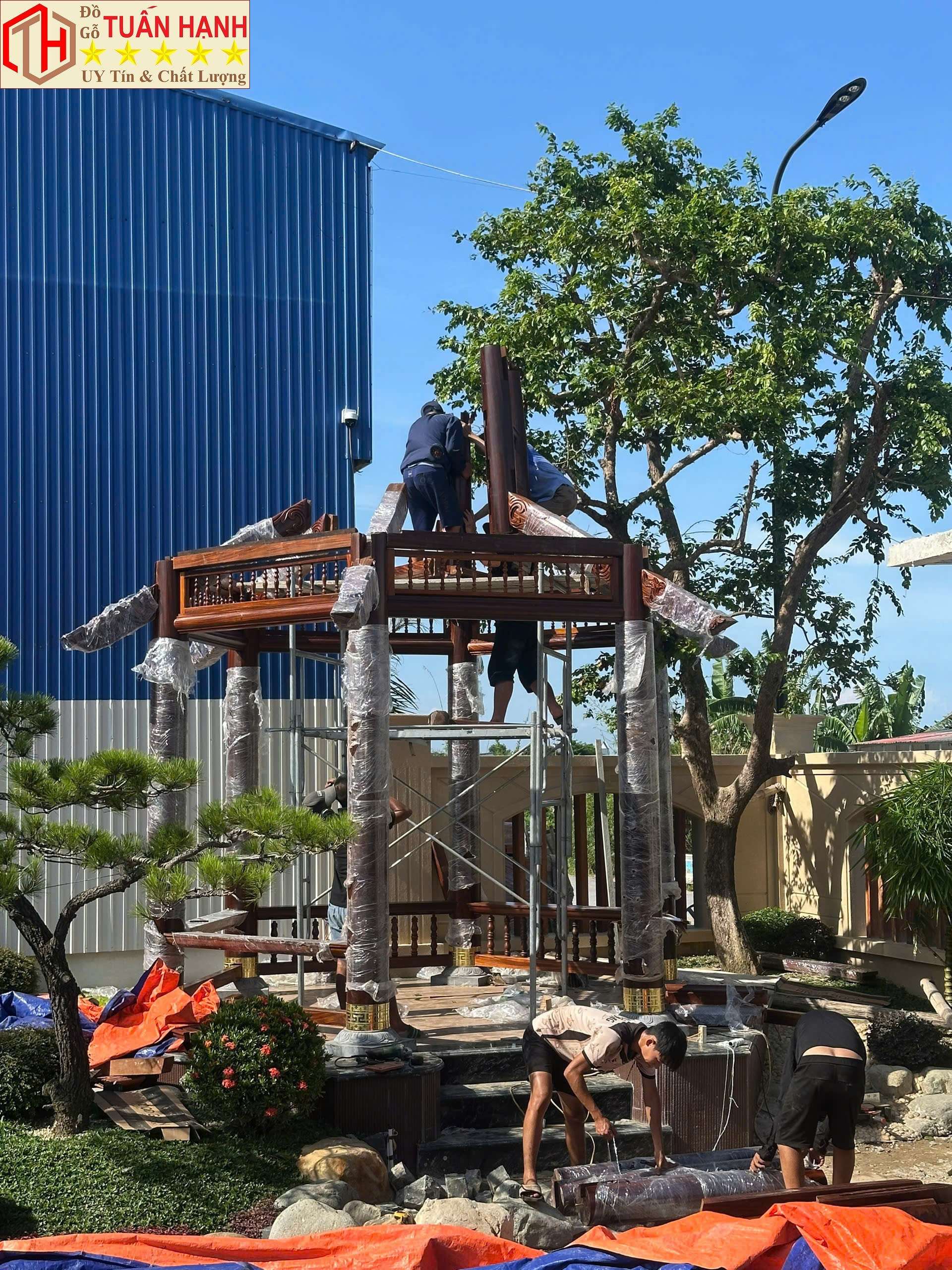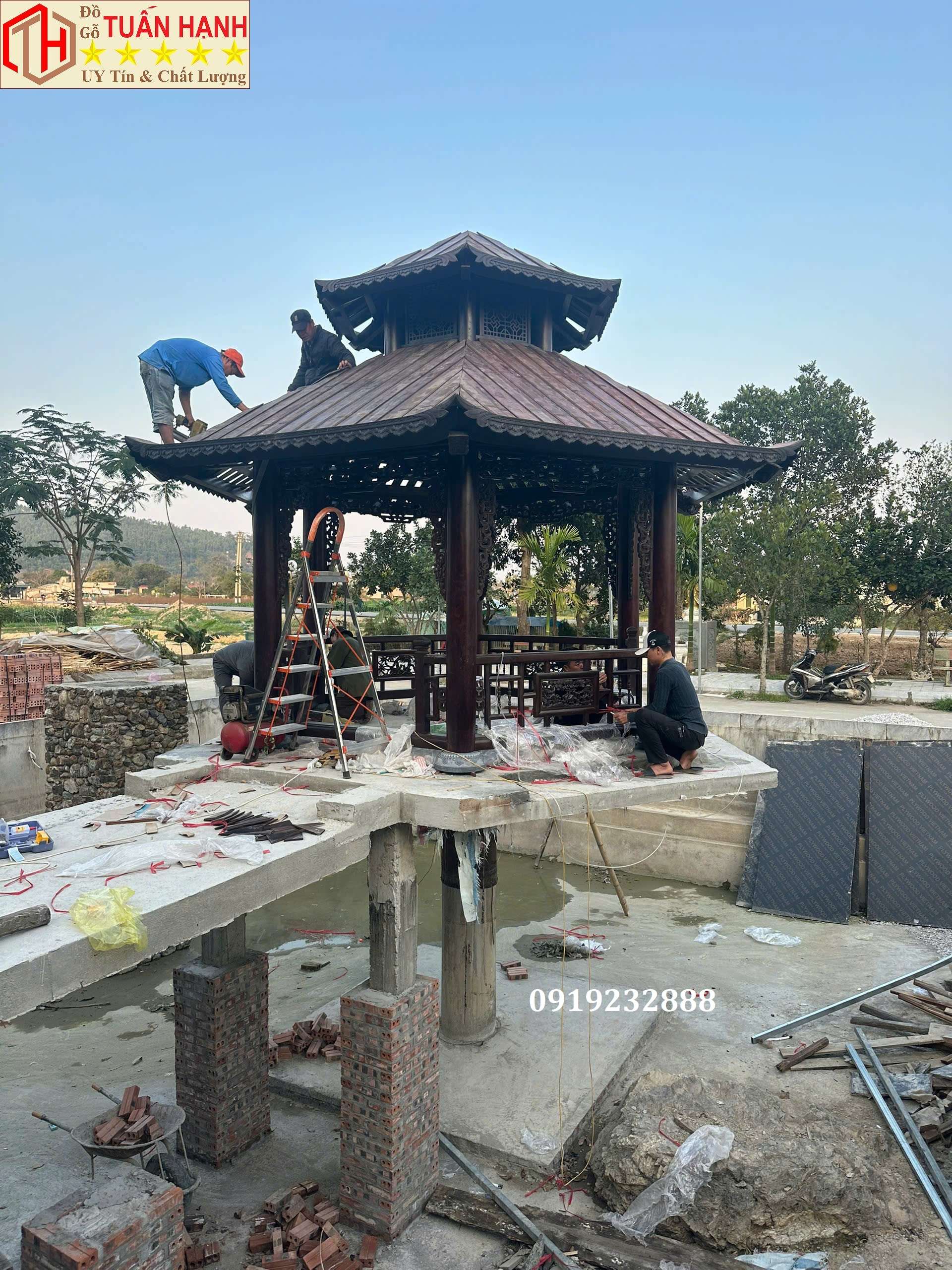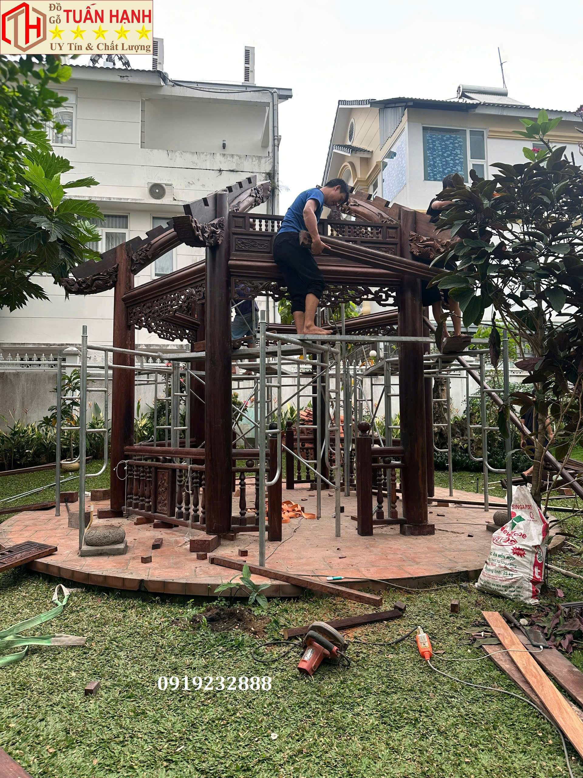 Xưởng sản xuất Nhà Gỗ Tuấn Hạnh nhận thi công Lầu Trà Lục Giác Gỗ Lim theo kích thước yêu cầu, hỗ trợ vận chuyển lắp đặt toàn quốc.