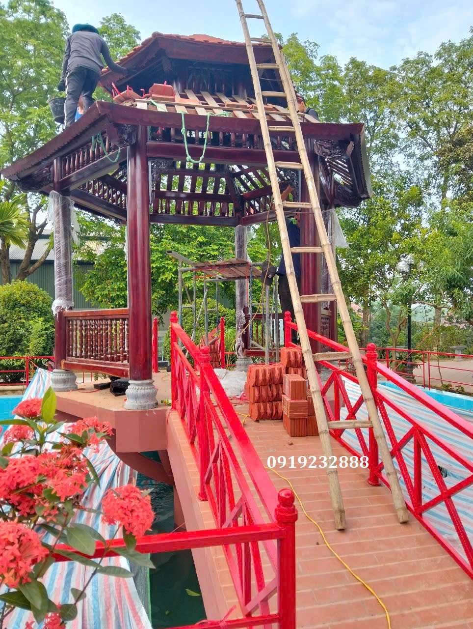 Xưởng sản xuất nhà gỗ Tuấn Hạnh nhận thi công nhà gỗ cổ truyền – Lầu Trà Lục Giác Gỗ Lim cũ & mới, chòi lục giác gỗ lim, lầu trà 2 tầng mái.