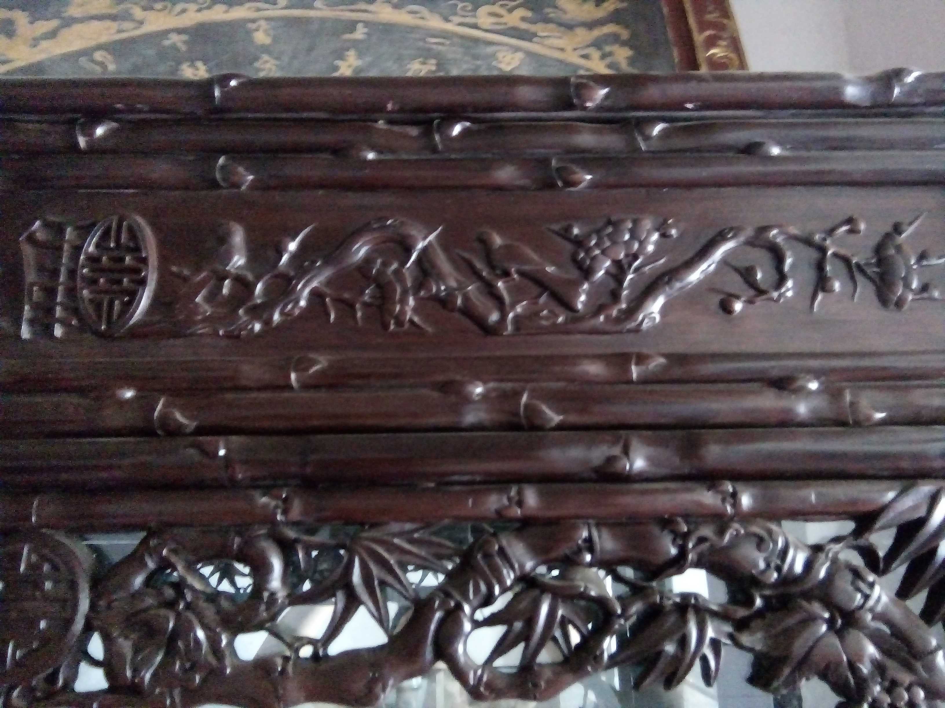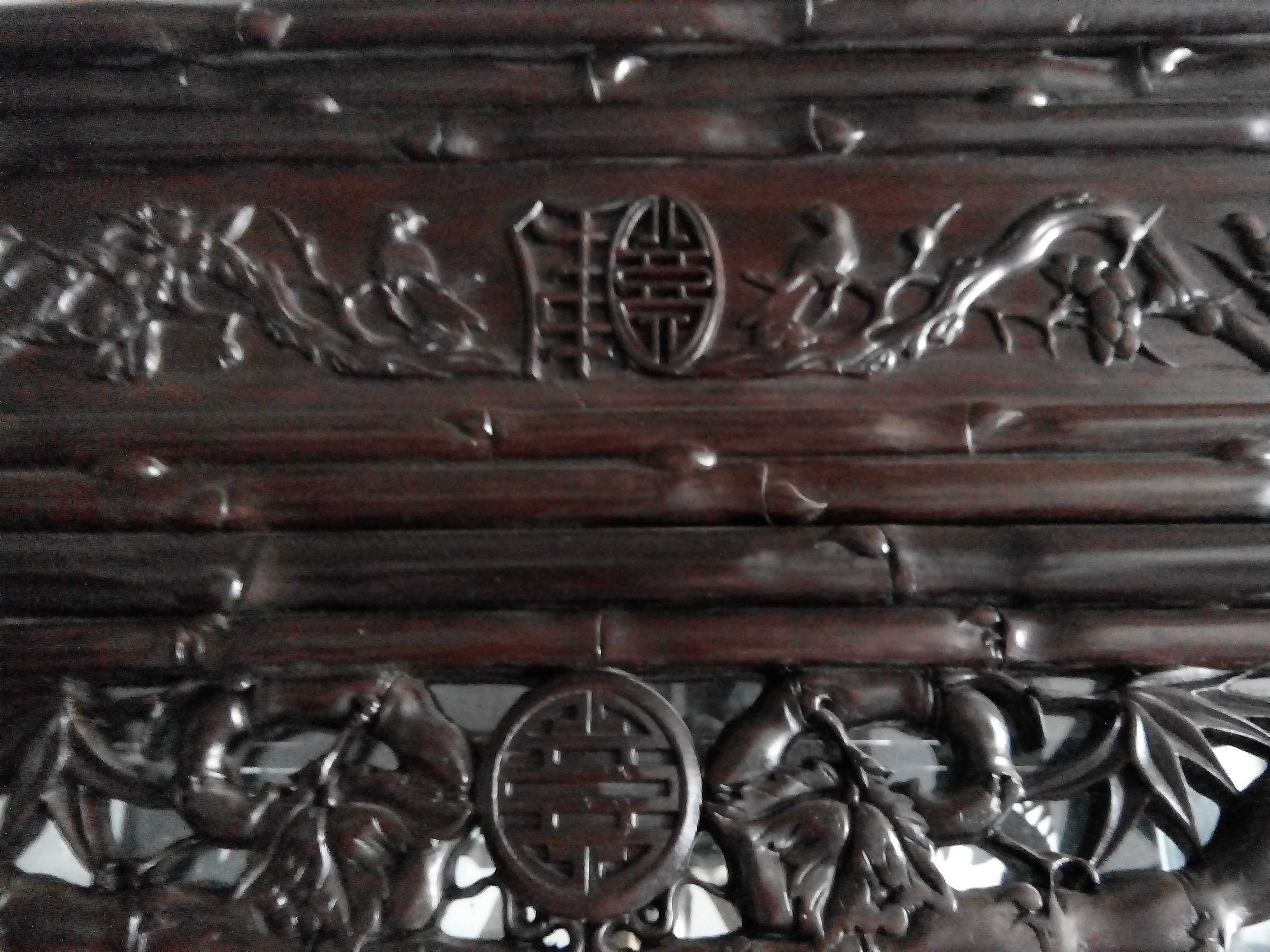 Chất liệu GỖ GỤ mật.( chạm trúc nho cài thọ)